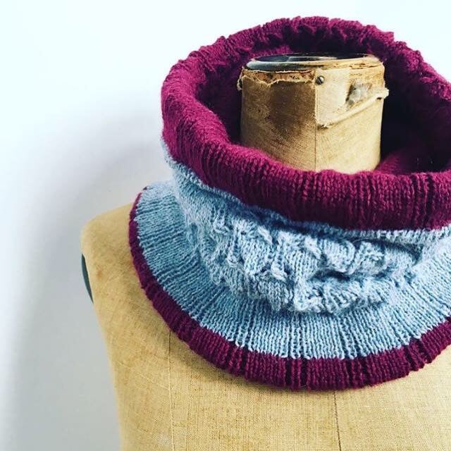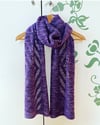 This rectangular scarf is worked in rows using a simple lace and structural pattern. The design was first published in 2018 in the magazine “Artlana anders”.