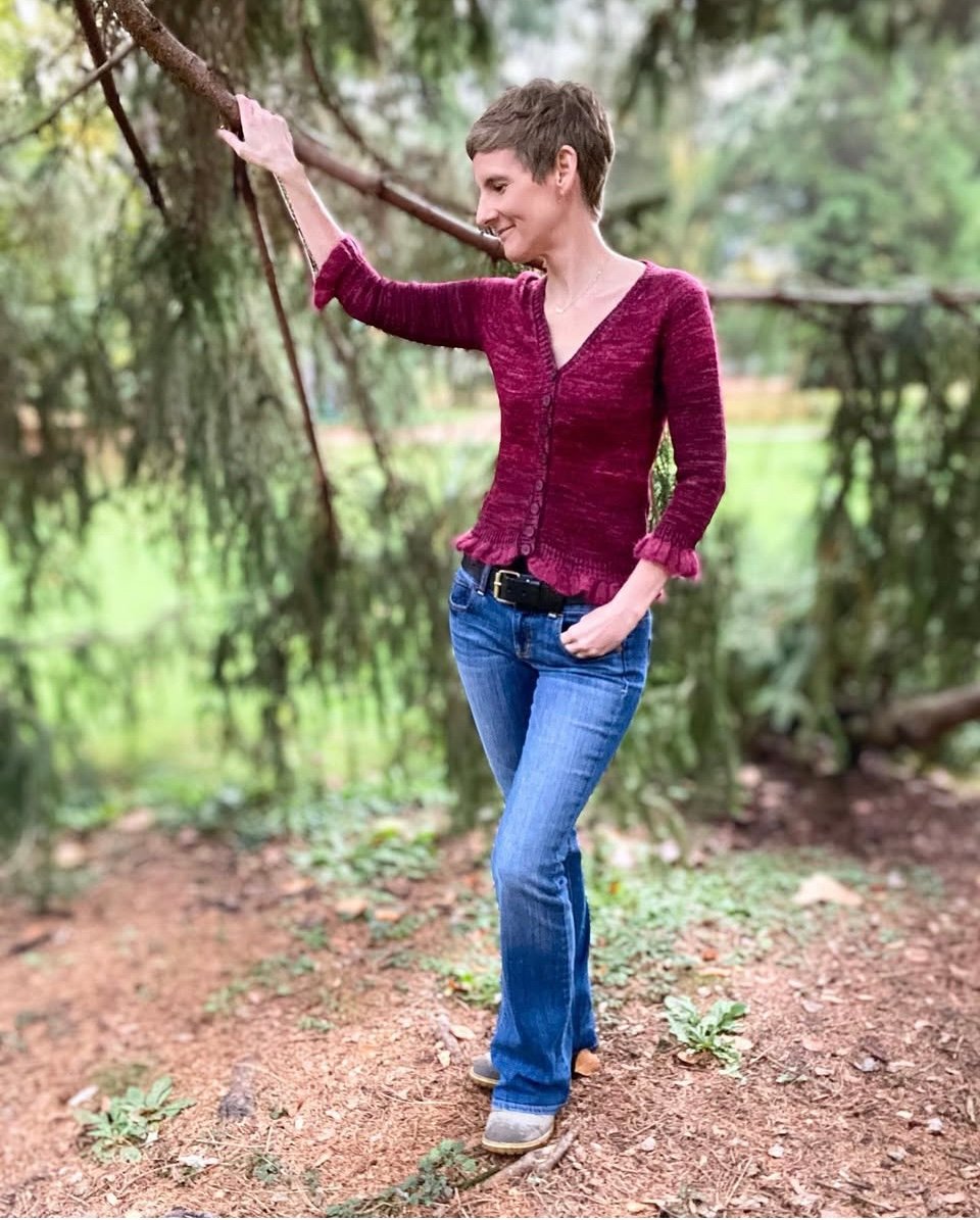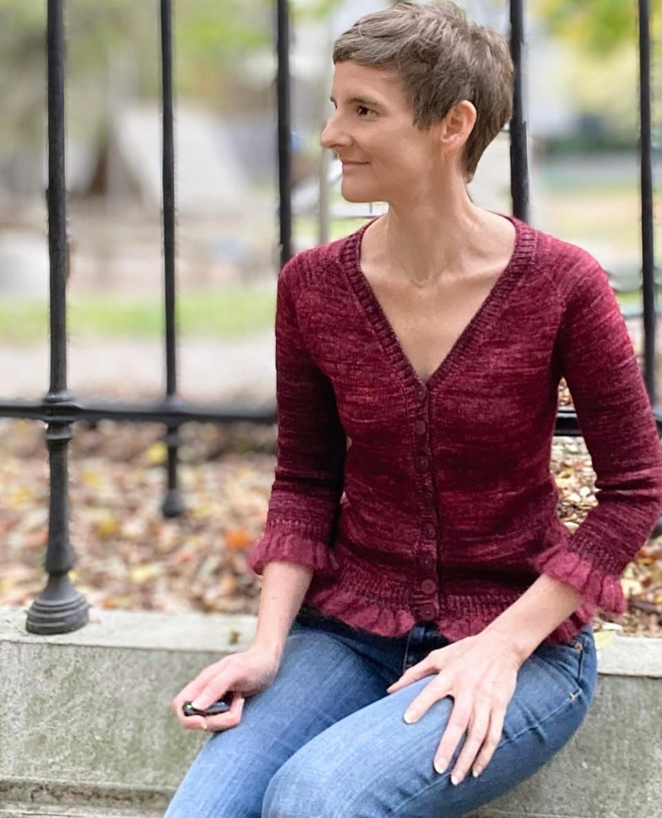 Dieser einfache, gerade geschnittene Cardigan wird von oben nach unten mit Raglanzunahmen und V-Ausschnitt gearbeitet. Verkürzte Reihen am Rücken formen und heben die Nackenlinie. Begonnen wird mit einem provisorischen Anschlag. Je nach Style kannst Du den Cardigan mit Rüschen an Ärmeln und Bündchen, als Revers, einfarbig, mit schmalen oder breiten Streifen stricken. Deiner Fantasie sind keine Grenzen gesetzt!